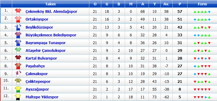 Küme düşenler: Maltepe Yıldızspor, Ayazağaspor, Çeliktepespor