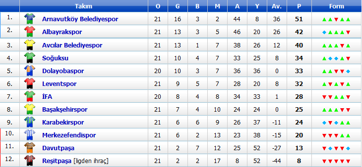 Küme düşenler: Reşitpaşaspor, Davutpaşaspor, Merkezefendispor