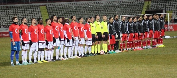 Karşılaşma öncesi Elazığsporlu futbolcular, seremoniye ay yıldızlı tişörtle çıkarak birlik ve beraberlik mesajı verdi.