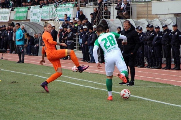 36. dakikada Yeni Amasyaspor’un atağında, David Simbo’nun ortasına iyi yükselen Kaan Yüksel’in kafa vuruşunda kaleci Ufuk Ceylan topu çizgi üzerinden çeldi. Topu önünde bulan Metin Kurt’un müsait pozisyondaki şutunda, meşin yuvarlak kale direğine çarparak oyun alanına döndü.