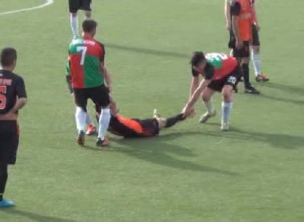 Kütahya’nın Tavşanlı İlçesi’nde oynanan 2. Amatör Lig maçında kırmızı kart gördükten sonra sakatlandığı öne sürerek yerde yatan futbolcuyu, rakip takımın oyuncaları sürükleyerek saha dışına çıkardı. Maç bitiminde ise iki takımın futbolcuları birbirine girdi.