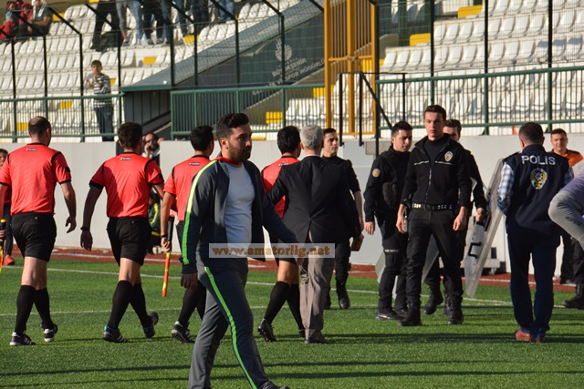 Suratına darbe alan Hakem Sezer Yalçın, Polisler eşliğinde soyunma odasına giderken, Yeşilköysporlu futbolcuyu takım arkadaşları ve Hocaları engellediler.